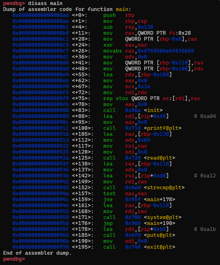 strncmp()의 1번째 인자가 cmd_ip buffer의 주소이다. = rbp - 0x110