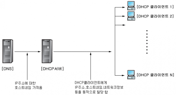 네트워크에 클라이언트가 연결될 때, IP 주소를 요청합니다.