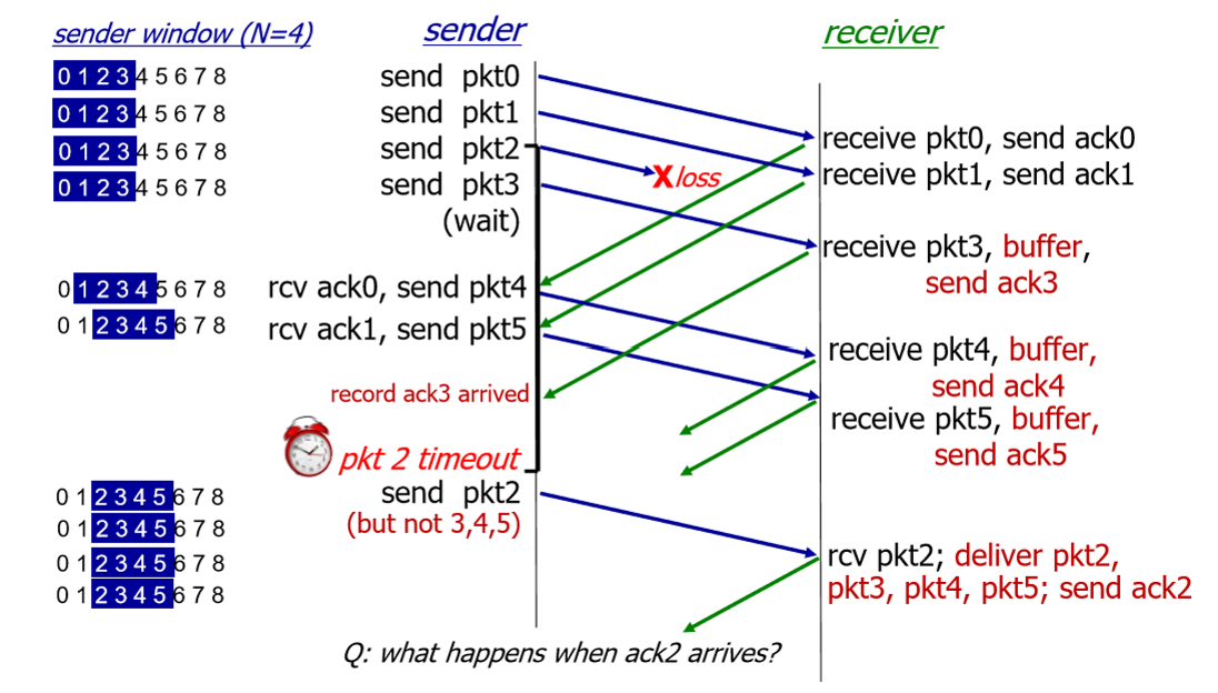 문제가 있었던 패킷만을 재전송하는 겁니다 (ack3을 보아하니 pkt3은 잘 보내졌음을 알 수 있고, pkt4와 5는 아직 timeout이 되지 않았으니, pkt3~5는 문제가 없습니다). 훨씬 효율적이지요.