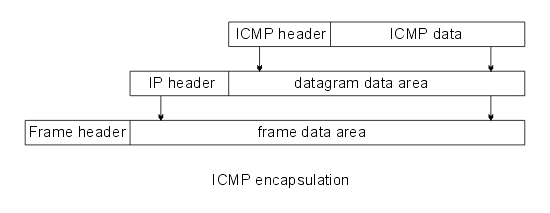 ICMP는 아래와 같은 encapsulation 과정을 거쳐 IP Packet에 포함됩니다.