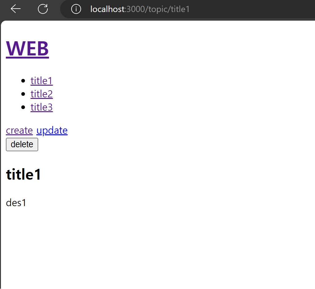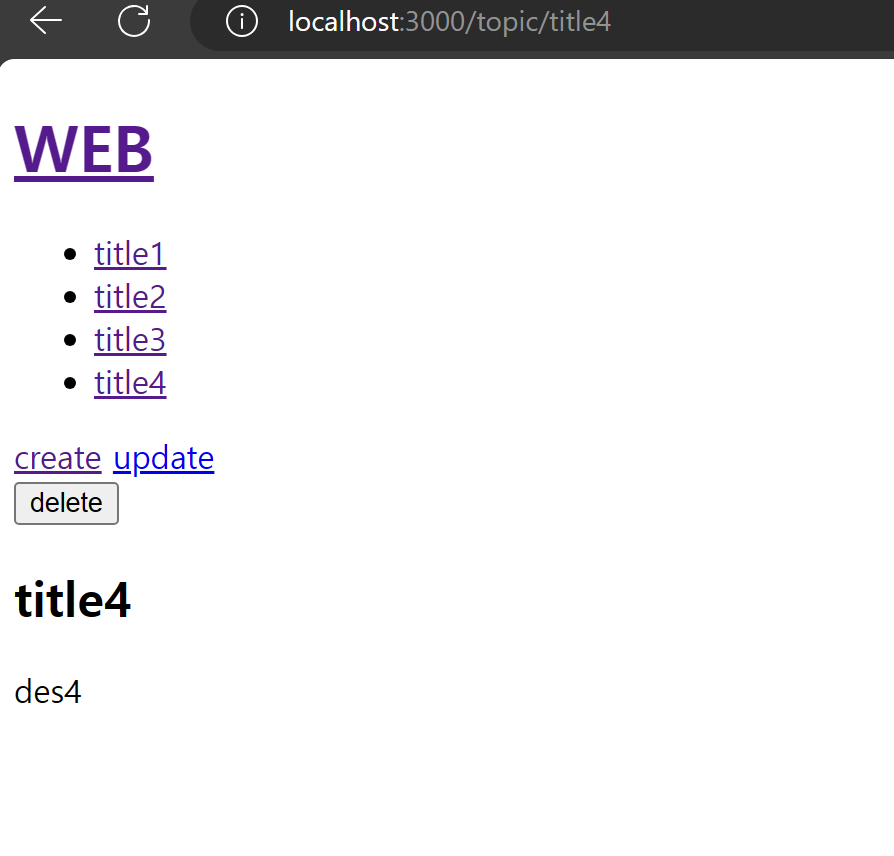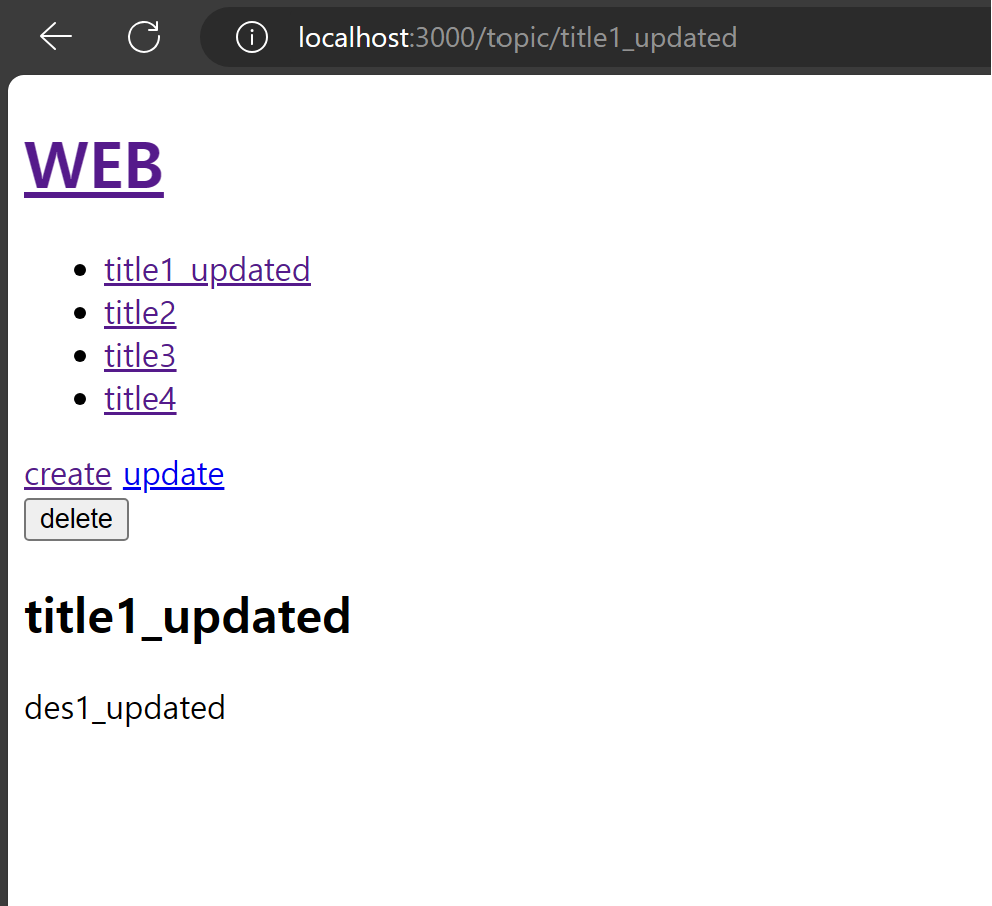 홈페이지로 리다이렉션되며, 리스트에서 title2가 없어진 것을 볼 수 있습니다.