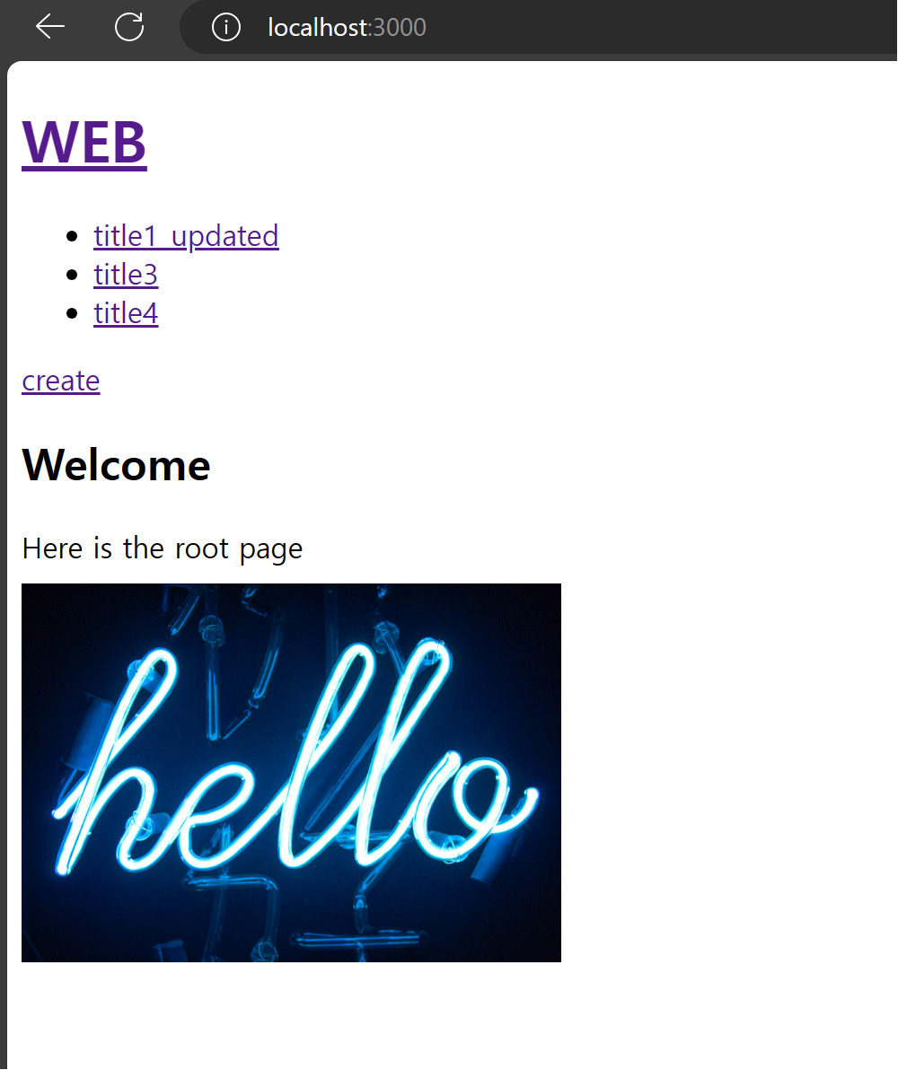 지난 글 ([Node.js를 통한 동적 웹사이트 구현 <1>] 중복되는 부분을 template으로! (생활코딩 강의 기반))에서는