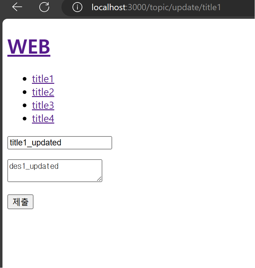 리스트에서 title1을 클릭하고, 입력창에 원하는 내용을 채운 뒤 제출 버튼을 누르면