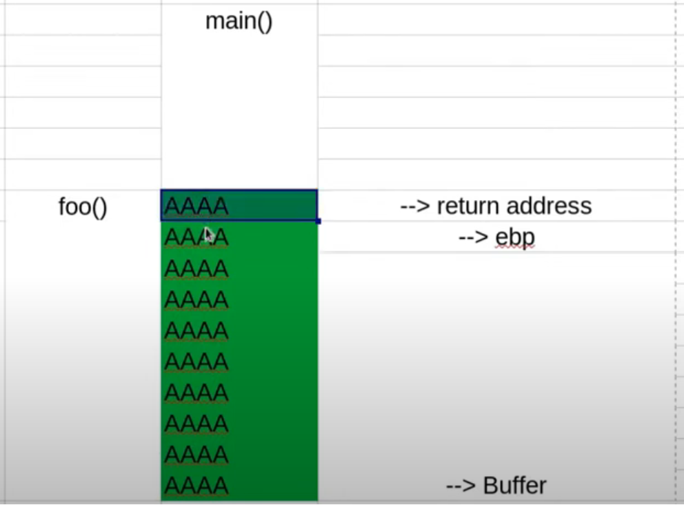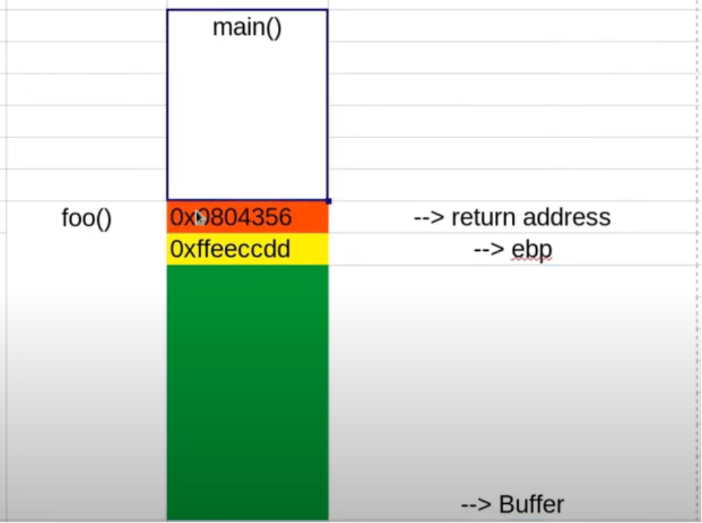 이 상태에서, buf 크기보다 큰 입력값이 들어와, SFP, 심하게는 return address 영역까지 넘칠 수 있고,