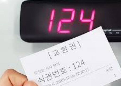 전광판의 숫자와 내 식권번호가 다르면 spin하며 기다린다.