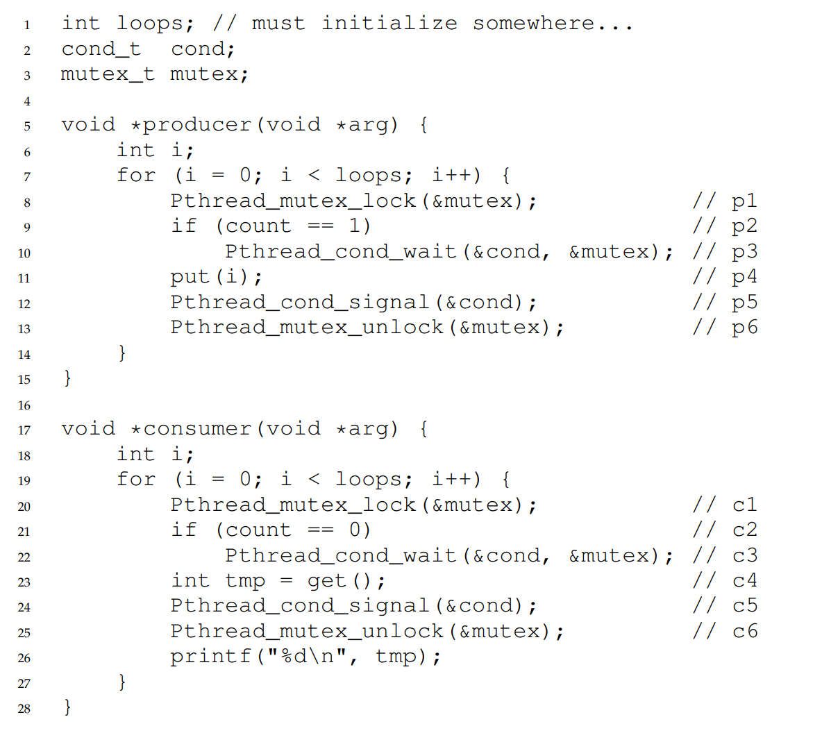 - 이 signal로 인해 C1은 wake up한 뒤 실행되어 get()한 뒤 signal을 보내고 sleep한다.