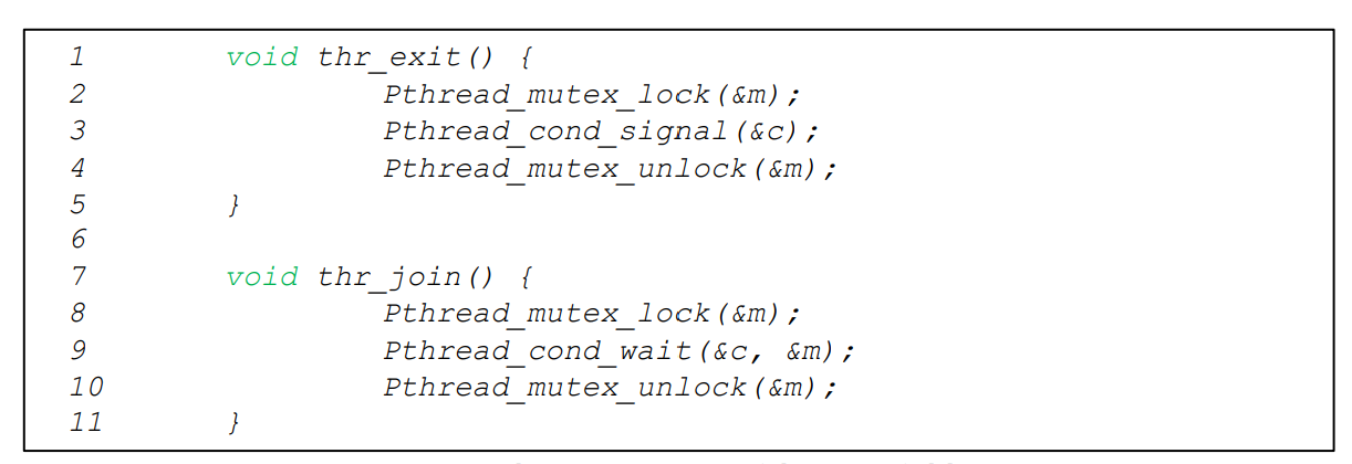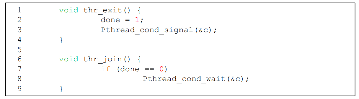 parent 스레드는 thr_join()에서 state variable을 기준으로 하여 sleep을 할지 말지를 올바르게 결정할 수 있었을 것인데