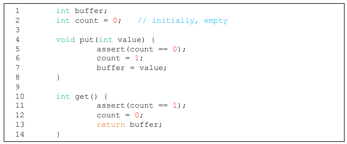 - C1은 count == 0이 된지도 모르고 get()을 실행하고, assert(count == 1)에 위반되어 오류가 발생하게 된다!