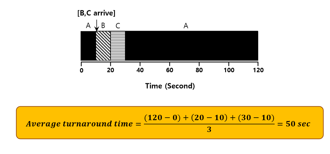 ✅STCF: Shortest Time-to-Completion First (= PSJF: Preemptive SJF)