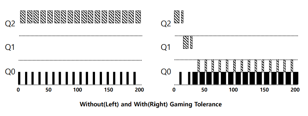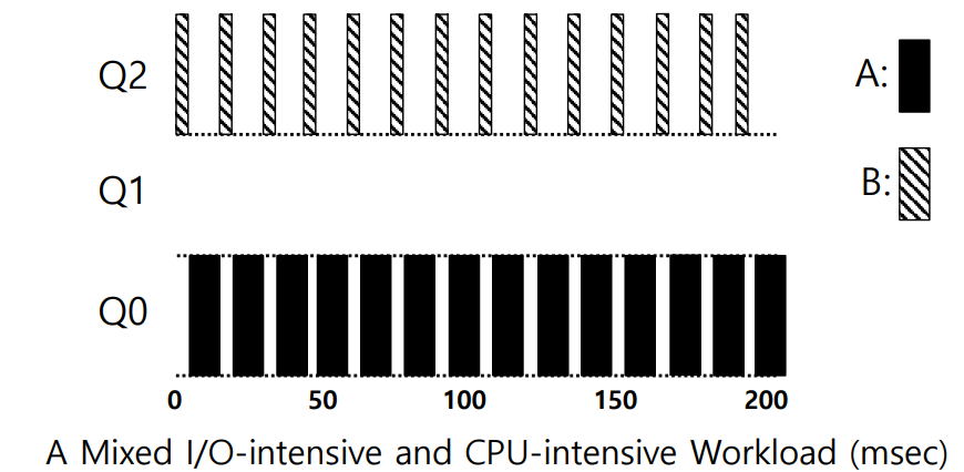 - 시간 소진 시 priority가 낮은 queue로 내려가는것이, time slice가 아니라 own time allotment를 기준으로 함. → scheduler trickng 방지