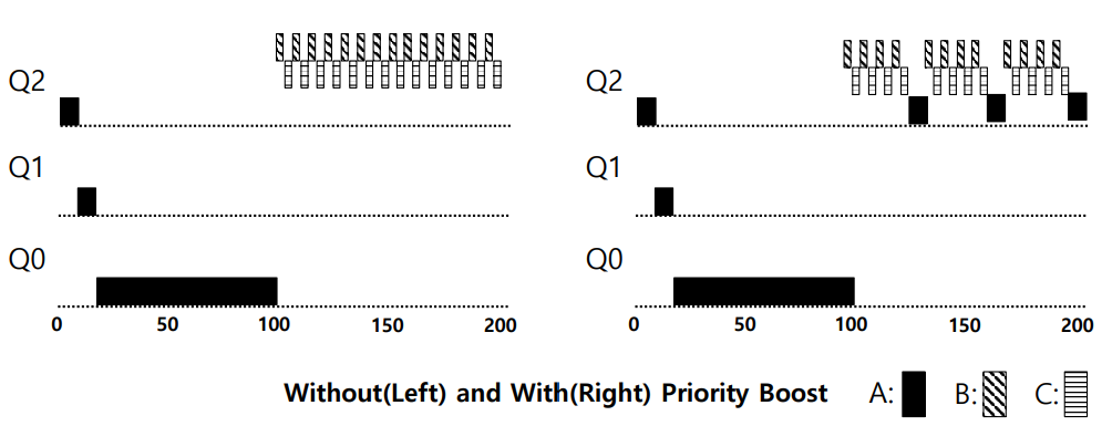 ▶Rule 5: After some time period S, move all the jobs to the topmost queue. : Priority Boost