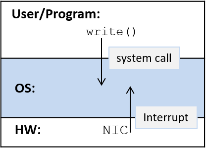 HW는 OS를 interrupt handler (상정된 위치. OS의 일부임)에서 실행하기 시작.