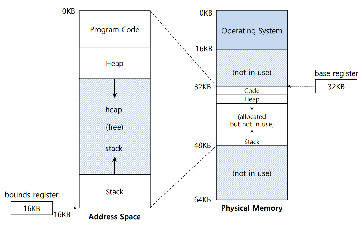 한 프로세스의 stack과 heap이 그리 크지 않으면, 그 프로세스에게 할당된 physical memory에서 stack과 heap 사이 공간은 그냥 낭비되어 버린다.