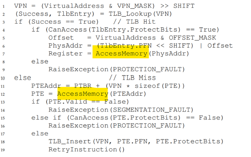 아직 없으면 page table look up을 한다 (-> +1회).