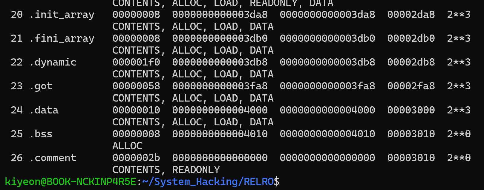 .init_array의 주소 = ./frelro가 매핑된 주소 + .init_array의 오프셋