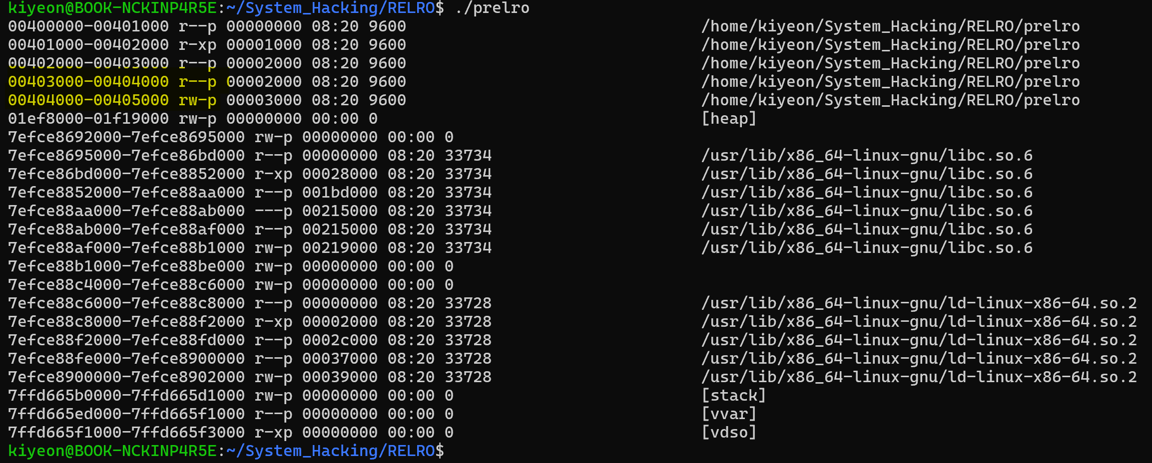 .got.plt, .data, .bss의 주소 = 0x404??? -> 쓰기 권한 O