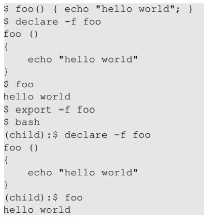 child shell을 실행하면, child shell은 이를 함수 정의로 전환한다.